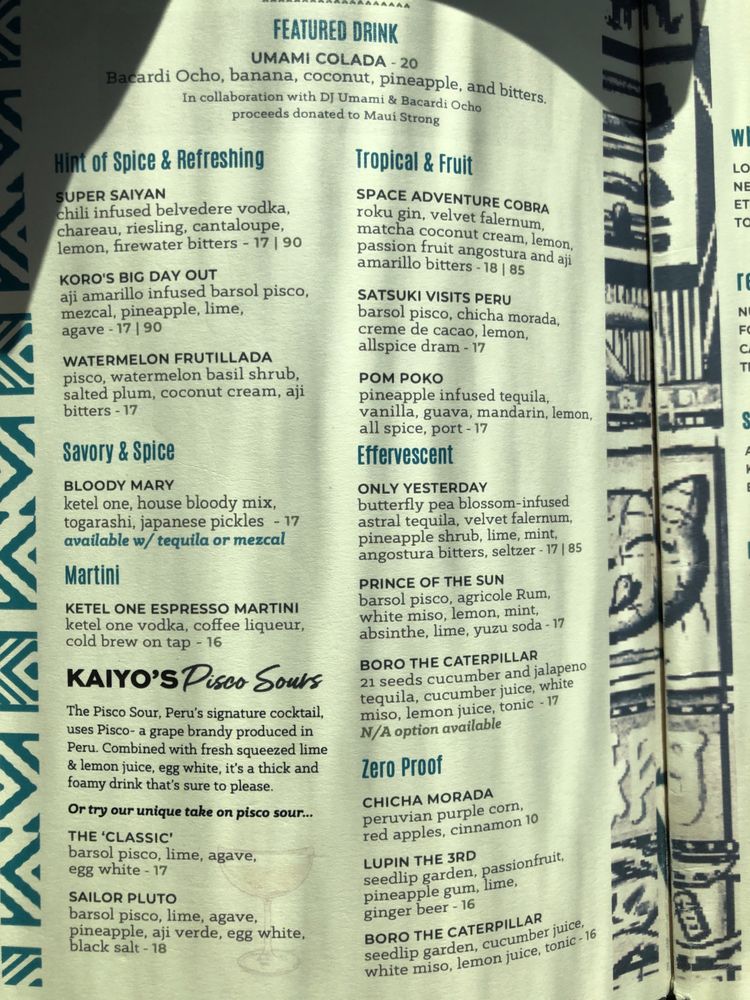 KAIYŌ Rooftop offers a diverse menu with pescatarian, vegan, and vegetarian options, as well as plastic-free packaging and reusable tableware. Located in San Francisco, this restaurant provides a trendy and upscale ambiance, perfect for groups and dinner. Customers praise the delicious food, such as the salmon avocado roll, Lima roll, crispy yucca, and miso black cod. The rooftop bar offers breathtaking city views and expertly crafted drinks. While some mention longer wait times for food, the overall experience at KAIYŌ Rooftop is highly praised for its great food, service, ambiance, and vibe. Don't miss out on the unique flavors and stunning atmosphere at this rooftop gem.